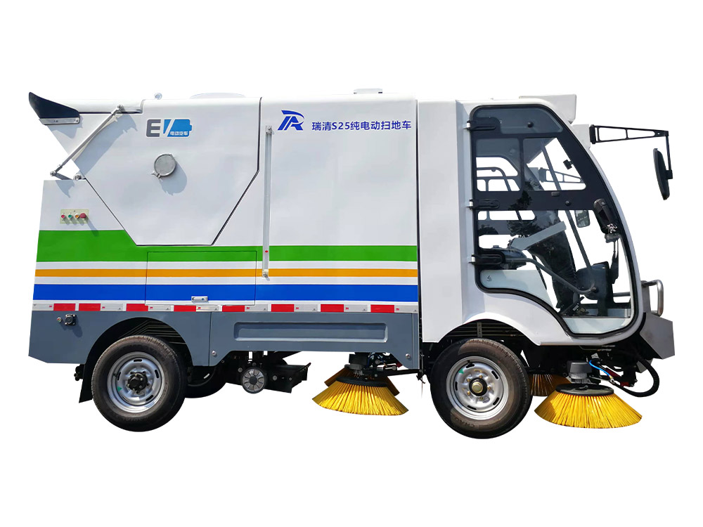 Ruiqing S25 pure electric pure suction sweeper is mainly used for general sweeping of main roads and auxiliary roads. It adopts pure suction mode, which can quickly clean fallen leaves, stones, sand dust, white garbage, etc. the garbage can has large capacity and high-level dump