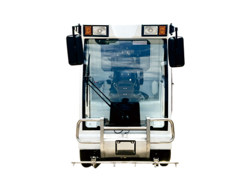 車身:全封閉駕駛室,三面全玻通透,前置不銹鋼保險杠,優(yōu)質(zhì)高強度金屬車身,作業(yè)視線好,安全美觀;