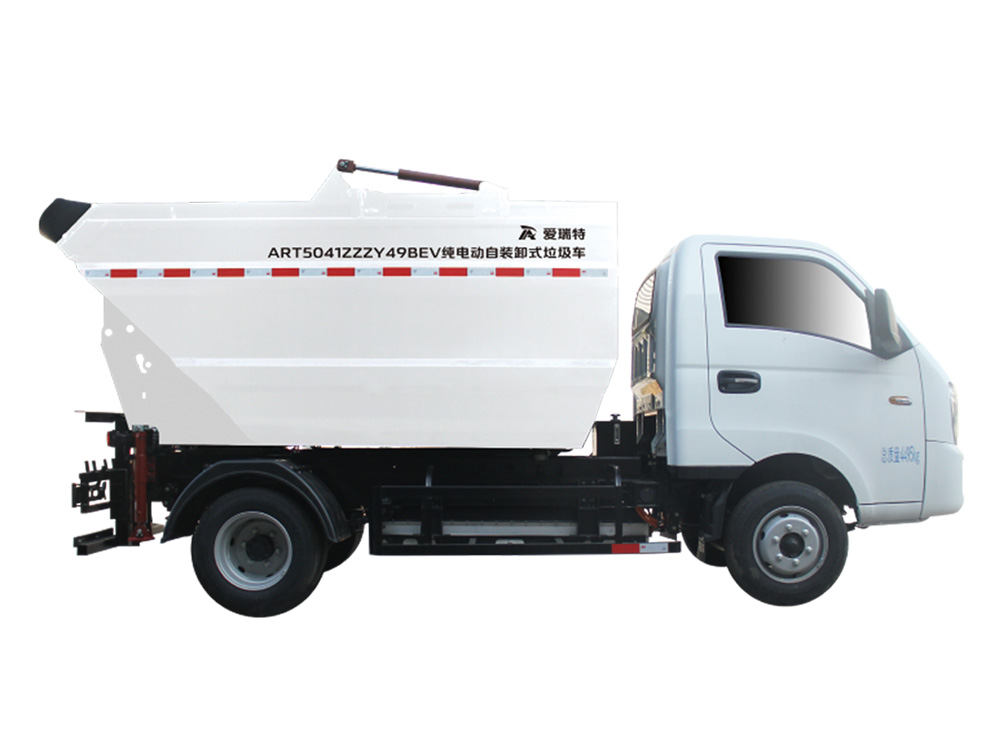 ART5041ZZZY49BEV純電動自裝卸式垃圾車采用后置翻桶機(jī)構(gòu)上料,高位傾翻垃圾箱卸料的生活垃圾收運(yùn)車,能夠同時(shí)滿足兩個(gè)標(biāo)準(zhǔn)垃圾桶同時(shí)上料,作業(yè)效率極高,適合城市小區(qū)、主次干道和沿街標(biāo)準(zhǔn)垃圾桶的收運(yùn),同時(shí)可以與大型純電動壓縮式垃圾車進(jìn)行車車對接。
